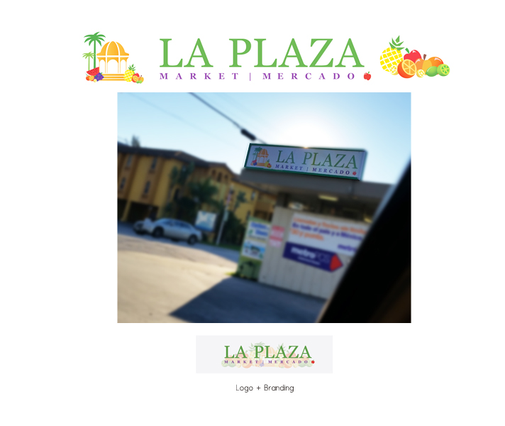 Logo + Branding | Created a brand for La plaza Market that is easily accessible to it's target demographic, in a fun, bright and colorful new image. Project included logo creation for the grocery store's entrance sign.