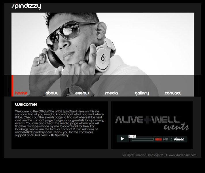 Multimedia Website | This website was created for a local dj in the bay area. Within the website there are video embeded, jQuery image slideshow, Social Media API's, Image Gallery and a Streaming Live Radio